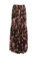 Floral Print Silk Mousseline Gathered Maxi Skirt