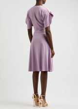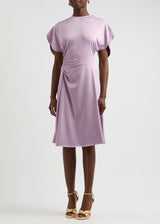 Victoria Beckham's dress is effortlessly chic. It's cut from satin-jersey, has fluttery cap sleeves and gathers at one side for asymmetric appeal. Wear yours with sleek pumps, like the designer would.