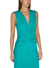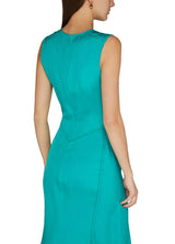 The Gathered Waist Midi Dress exudes easy elegance. Presented in a lively shade of Peacock for SS25, it has a waist-defining silhouette with a flattering pleat detail to the front. At the back, a V-shaped seam at the waist is mirrored by a subtle V neckline and longer-length hemline. Topstitch detailing adds an elevated point of difference.