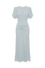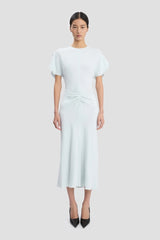 The house’s signature Bela Midi Dress is crafted from crepe back satin and is fitted at the hips with a flared skirt for a beautifully feminine silhouette. Front and back pleat details add tactile talking points, while side seams with a contrasting topstitch bring an elevated finishing touch. A new Glacial Blue colour way brings added refinement.