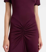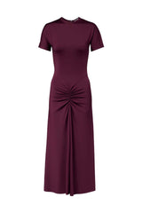 Crafted in stretch jersey for a body-skimming effect, the Gathered Waist T-Shirt Dress has a modest silhouette with round neckline and midi-length hemline. A V-shape seam at the waist with ruching brings a tactile point of difference.