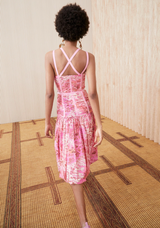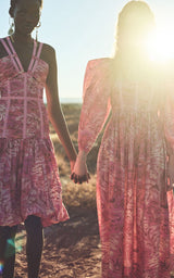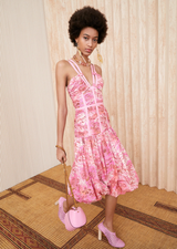 Ulla Johnsons's Kaia Dress emerges as the new hero silhouette, defined by its corseted bodice and softly pooling bubble skirt - a delicate juxtapose between softness and restraint. This knee-length dress is cut in a Paradise Lost printed poplin, aptly named for its lush and captivating artwork which unfolds throughout the ruched and gathered silhouette.