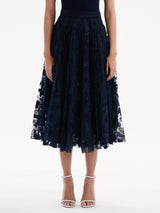 As featured in the Oscar de la Renta's lookbook, this midi length skirt has been crafted in Italy from a Guipuire-lace tulle.
