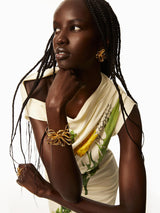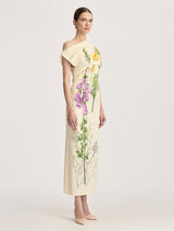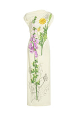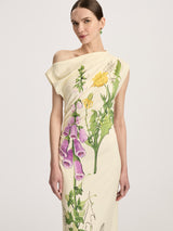 Crafted of fluid jersey adorned with a sketched foxglove print on the front, this midi style drapes so effortlessly over the body.