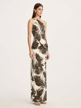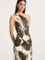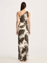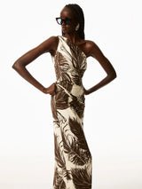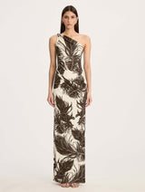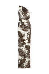 Crafted in Italy from a stretch viscose this one-shoulder feather print gown drapes over the waist for a figure-flattering silhouette.