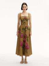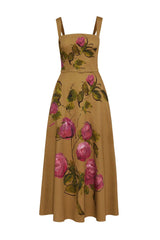 A painterly interpretation of the English rose, this exquisite print was hand-painted by Co-Creative Director Fernando Garcia. Crafted in cotton poplin, this dress with its full skirt and square neckline showcases both elegance and ease.
