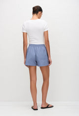 Designed with summer days in mind, this easy pull-on short is made from our organic cotton poplin with a washer finish. Features an elasticated waistband, inseam pockets, back pocket detailing and an angled flattering hem. Wear these shorts casually over your swimwear or paired with our matching Relaxed Shirt.