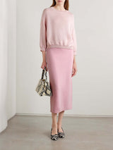A milano-stitched pullover designed to highlight the softness and structure of an airy, lofty blend of cashmere and mohair. Dropped shoulder seams enhance the unique, deliberately rounded silhouette. Refined by ribbing at wide crewneck, elbow-length sleeves, and hem.
