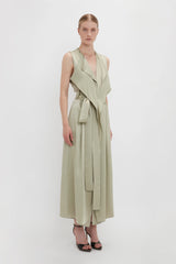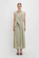 Victoria Beckham's Trench dress features a wrap style front with wide lapel, a cut out at the back with fitted skirt at the waist.
