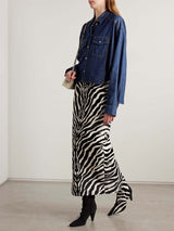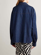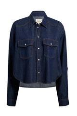 Designed with a pointed yoke and flap pockets, KHAITE's 'Grenon' shirt has a Western appeal. Made from denim in a dark-blue 'Benson' wash, it has contrasting topstitching and fastens with lustrous snaps. The high-low cut ensures it looks neat even when left untucked.