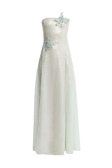 Appliqué Sequined Strapless Gown