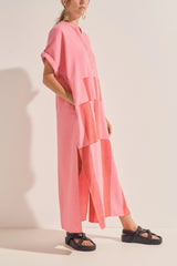 The Castor Caftan redefines relaxed elegance with its flowing silhouette and thoughtful details. Crafted from our signature broken stripe in a neutral colourway—an intricate fabric that takes days to create on traditional handlooms. This collarless caftan features three polished gold buttons for subtle shine. Short sleeves are softly rolled and buttoned in place, while side slits offer ease and graceful movement. A celebration of craftsmanship and effortless style, the Castor Caftan is a timeless addition to any wardrobe.