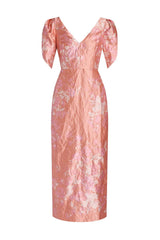 Crafted from a textured satin, this midi length dress has been designed for a slim fit. It has a v-neckline and capped short sleeves.