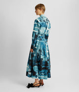 The Amneris Painting print takes inspiration from mid-century set designs for opera performances. This pleated midi skirt, crafted from a heavy cotton poplin, is the perfect showcase for it. Wear yours with the matching shirt.
