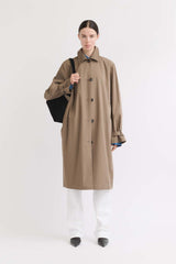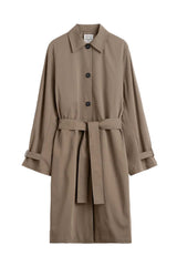 Light trench realised in the season's hazel hue for a timeless look. Imagined for the changing spring temperatures, it is made from light cotton and can be cinched at the waist with a matching belt.