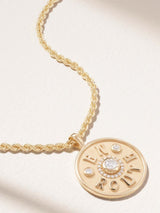Whether you're embarking on a new path or simply vibe with its mantra, Marlo Laz's 'En Route' necklace is a reminder to always keep following your dreams. It's made from 14-karat gold that shimmers with diamonds across the brand's signature talisman.