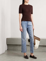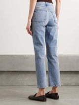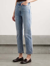 From pocket placement to the colour of the topstitching, each detail of Khaite's jeans is carefully considered to ensure an equally comfortable and flattering fit. This light-blue 'Abigail' pair has a high-rise waist topped with the signature enamelled button and straight legs that are cropped just above the ankles. Wear yours with everything from cardigans to crisp shirting.