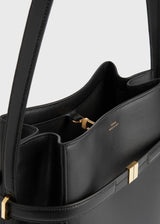 The Belted buckle bag debuted on the Fall Winter 24 runway, marking TOTEME's 10th anniversary. Crafted in Italy from softly textured Palmellato leather with gold-tone hardware, it features an elegant belt to cinch the flattened bucket silhouette or leave open for extra space and is fitted with two internal slip pockets. Wear it in the city, suspended from the shoulder strap.