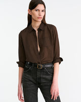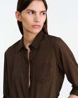Classic fit shirt. Chest pocket. Slightly sheer fabric. Tall cuff with two buttons and sleeve placket.