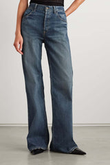 Nili Lotan's 'Terrell' jeans are made from faded denim and intentionally frayed at the floor-grazing cuffs. They have a comfortable high-rise waist and a straight leg.