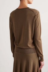 KHAITE's minimalist approach to design results in timeless pieces like this 'Senta' sweater. It's knitted from fine wool-blend in a versatile brown hue called 'Cafe'. Team it with smart tailoring or jeans, depending on where you're headed.