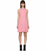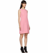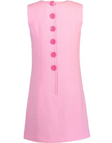 Crafted in Italy this Dolce & Gabbana sleeveless shift dress features six large buttons down the back. It has a crew neckline with back hook and zip closures and knee length cut.