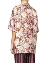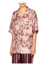 The Burberry Silk Shirt is crafted a piped pyjama-style silk shirt with painterly florals. Features a notched collar, oversized short sleeves, button front, chest patch pocket, oversized silhouette, About 27" from shoulder to hem, Mulberry silk, Dry clean, Made in Italy, Model shown is 5'10" (177cm) wearing US size 4, ; PINK