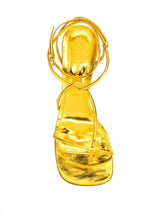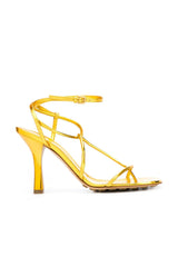 Skinny strap sandals in metallic calf leather. Squared toe with rounded edges. Buckle fastening.