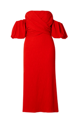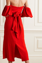 Designed with billowy, removable sleeves, this 'Fine Love' midi dress has been made in Colombia from red crinkled-crepe and has a fitted bodice with ties that wrap around the front and drape in the back.