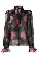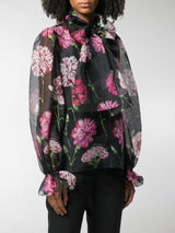 Crafted in silk organza this bossy bow style blouse from Dolce & Gabanna features one of their iconic floral prints.