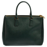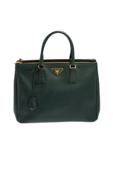 Mario Prada opened back in 1913 in Galleria Vittorio Emanuele II in Milan. The accessory made of Saffiano leather has a double handle and detachable shoulder strap that allow it to be worn as a shoulder bag or handbag. The bag stands out for its sophisticated simplicity and is decorated with the leather triangle logo and gold-tone metal hardware.