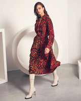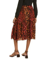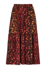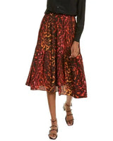 Neon Animal-print Silk Full A-line Midi Skirt In Red