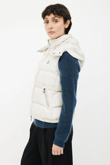 Since the 1980s, Moncler has cemented its cold-weather expertise with the glossy and protective nylon laqué shell fabric. This down gilet features a detachable hood, zip and snap button closure and zipped pockets.