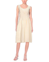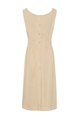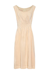 This cream sleeveless dress from Marni features a scoop neckline, a midi length, a button down back and is detailed with contrast stitch detail dress