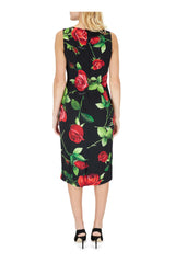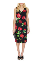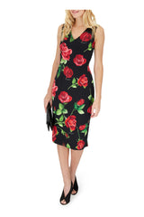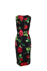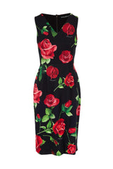 This Dolce & Gabbana sheath dress has been crafted in Italy from stretch silk. The knee length style has a v-neckline and features an allover rose print.