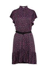 Lalique belted floral-jacquard mini dress from Erdem features a ruffle cap sleeve, a mandarin button down collar and a flounce hem.