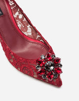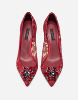 Featuring an iconic, timeless shape, these Bellucci pumps from Dolce and Gabbana's Rainbow collection are feminine and elegant. Covered in lace they feature the a colourful crystal broach which matches the red lace.