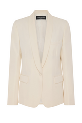 This sleek and sophisticated single breasted dinner jacket from the French house of Balmain features a slim fit, a shawl lapel, single vent, covered buttons, three exterior pockets and three interior pockets.