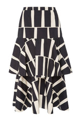 Featuring a graphic black and white print, the 'Vanguard' cotton skirt is cut for a relaxed fit and is layered with ruffles throughout. Wear yours with the matching top.