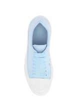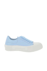 Alexander McQueen experiments with proportions to create these Powder Blue leather sneakers. Made in Italy with sleek canvas uppers, they're accented with logo hot-stamped heel panels and set on exaggerated rubber soles.