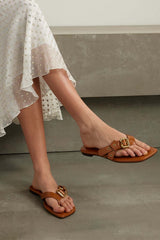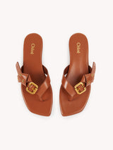 The Mae sandals are crafted from shiny calfskin with a distinctive soft insole. The thong front is embellished with knotted straps debossed with the Chloe logo, gold-tone eyelets and the Maison's Paddington buckle.