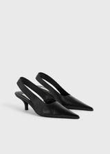 Designer’s note: “These are a modern interpretation of classic pumps, with bold slingback straps and a contoured heel. We imagined them in smooth Nappa leather to complement minimalist looks. Tuck them into your jeans for directional styling."