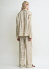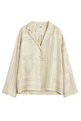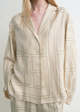 TOTEME blouse made from mid-weight silk twill embroidered with a fine monogram pattern in contrasting black thread. It is shaped to a relaxed silhouette with a lapel collar and spacious long sleeves and fastens with mother-of-pearl buttons. Wear it all day with the Monogram silk PJ bottoms.