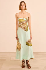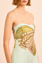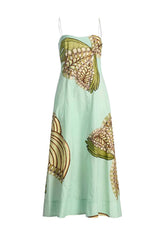 The Vesela Dress is richly printed with florals by celebrated Art Brut painter Anna Zemánková—her otherworldly, gestural forms magnified across poplin with a satin finish. Simplistic in silhouette, this multi-coloured dress is suspended from delicate straps and skims the form to a gently flared hem.