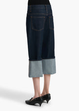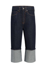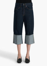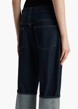 Sitting low on the hip with a dropped rise, this relaxed five-pocket silhouette is cropped by wide, pressed cuffs. Designed to hit at the ankle when worn uncuffed. Each hand-finished pair has a button of antiqued nickel.