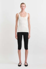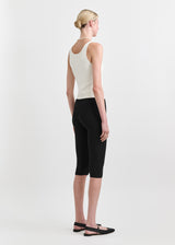 Capri leggings cut with a soft cotton handfeel for a relaxed, speedy mood. They have an elasticated waistband and slim legs that end just below the knee.