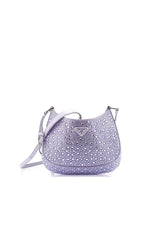 Feminine, elegant and modern, the Prada Cleo bag is made of satin and embellished with luminous crystals of different sizes that give the bag refined charm. The sinuous shape that recalls archive styles makes the accessory iconic.