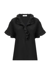 Crêpe de Chine Short-sleeve Ruffled Blouse