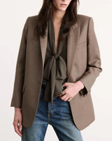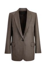 Slightly oversized classic constructed blazer in stretch wool twill. Flap pockets. Chest welt pocket. Interior pocket. Logo horn buttons. Front button closure. Cuff buttons.