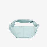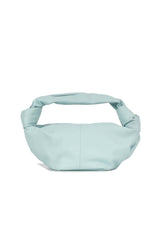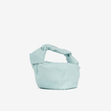 The Bottega Veneta Double Knot Mini Bag in Pale Blue features a knotted top handle, a zippered main compartment as well as an internal pocket.